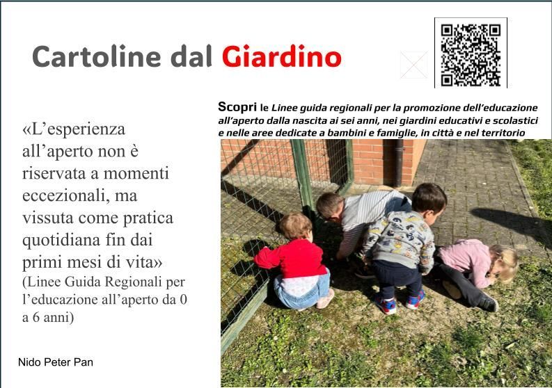 Scarica le cartoline relative alla Giornata Regionale dell'Educazione all'aperto relative ai nidi che gestiamo. Inquadra i QR Code per saperne di più