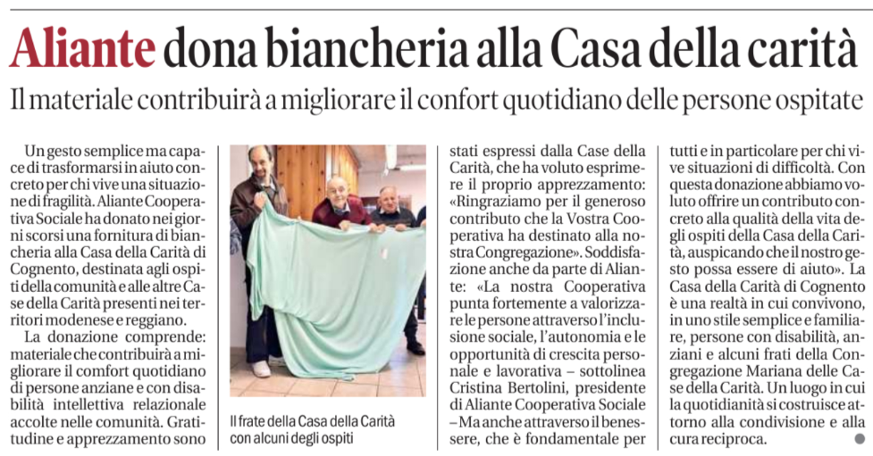 - SUL PANARO.NET: Aliante Cooperativa Sociale dona biancheria alla Casa della Carità di Cognento