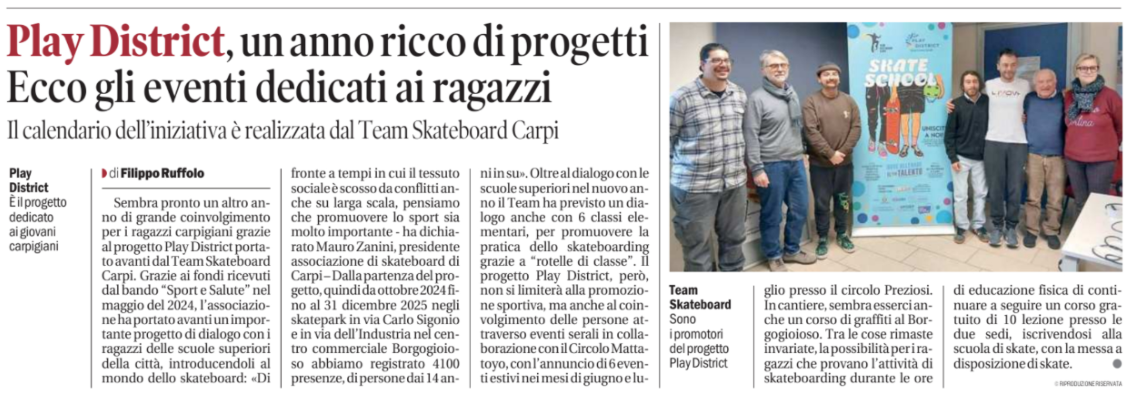 - SASSUOLO 2000: Carpi, Team Young Skate: Aliante al lavoro per favorire aggregazione e inclusione