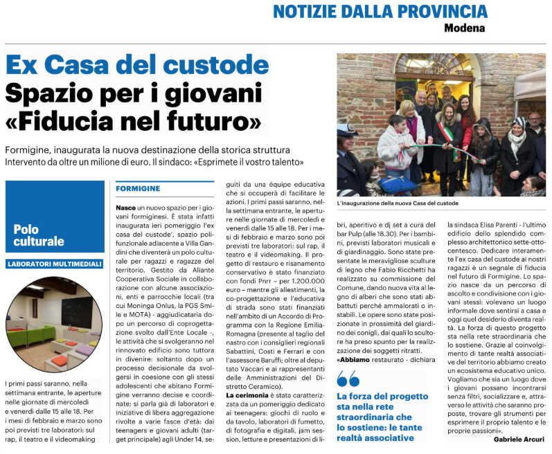 - IL RESTODELCARLINO.IT: Ex Casa del custode. Spazio per i giovani: "Fiducia nel futuro"