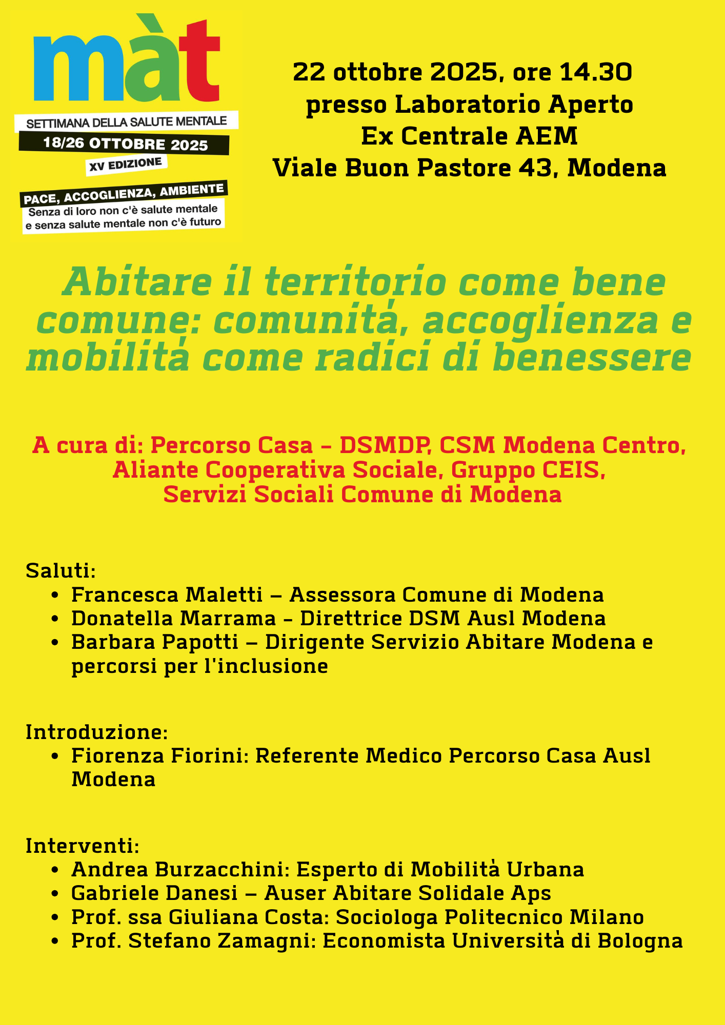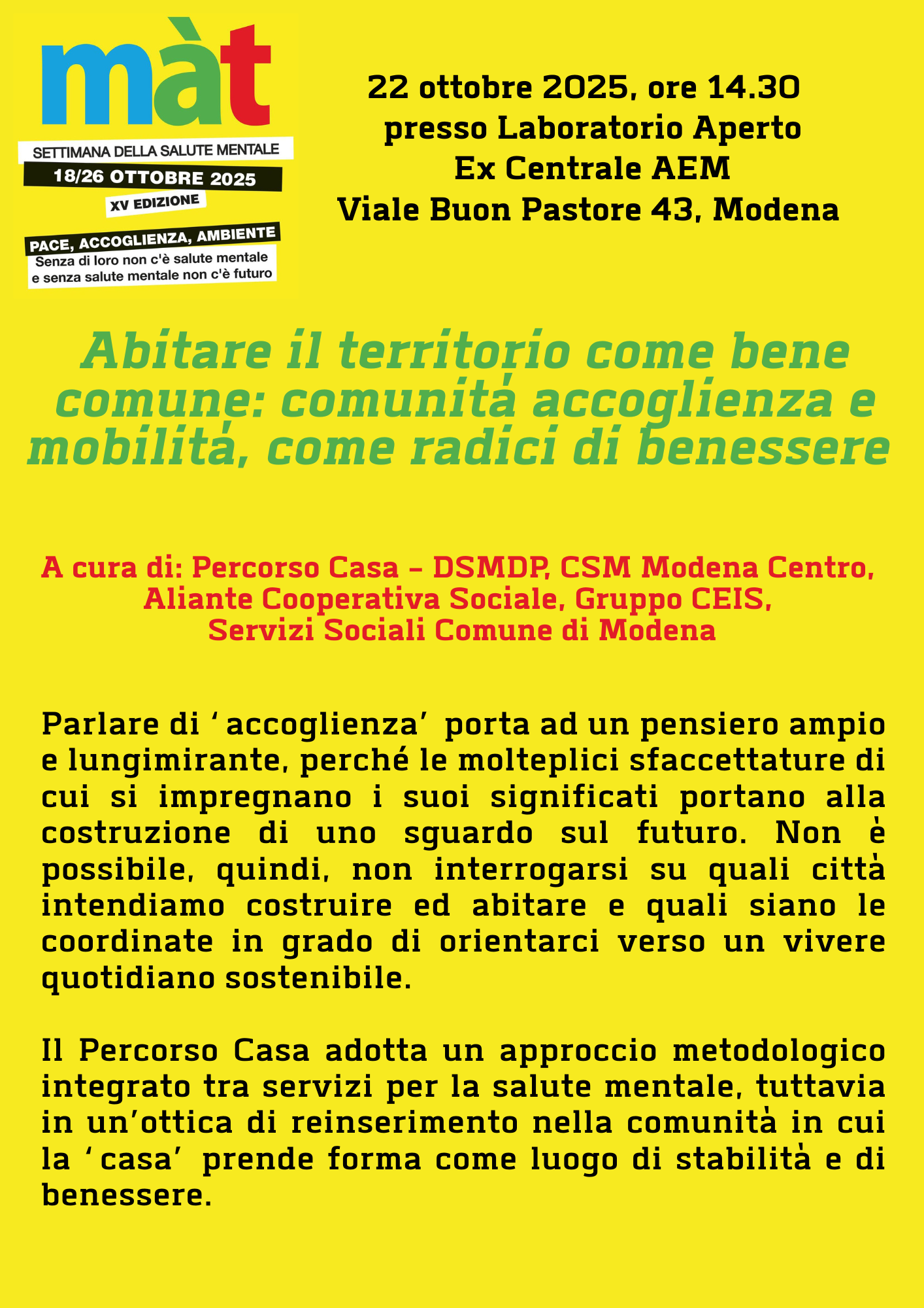 Siamo nel vivo di "màt", la Settimana della Salute Mentale - che si svolge a Modena e in diversi centri della provincia con un ampio programma di eventi, tra incontri, lezioni, momenti di confronto e novità - e come sempre pronti a fare la nostra parte anche quest’anno.